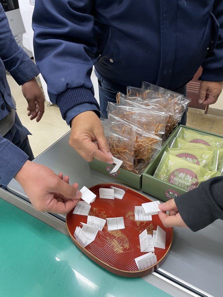 さきイカとどら焼き 2025 11/19 ブログ 2025年11月19日 こんにちは!さきイカとどら焼きを頂きました✨ お酒のツマミになりそうなさきイカと、笹だんご風味のどら焼き、どちらも美味しそうです🤤 どちらが当たるかはクジ引きで決めます!あなたは酒のツマミ派?甘党派?😊 昨日はあられが降りました。本格的に寒くなってきて冬の訪れを感じますね🥶 ブログ よかったらシェアしてね! URLをコピーしました! URLをコピーしました! 越前松島水族館 飼育管理センター屋上高架海水槽取替工事 関連記事 越前松島水族館 飼育管理センター屋上高架海水槽取替工事 2025年11月13日 りんご狩り🍎 2025年11月8日 秋の空 2025年11月6日 和菓子😊 2025年11月5日 秋のマドレーヌ 2025年11月4日 技能実習生の様子 2025年10月14日 小松基地航空祭 2025年10月8日 中秋の名月🌕 2025年10月7日