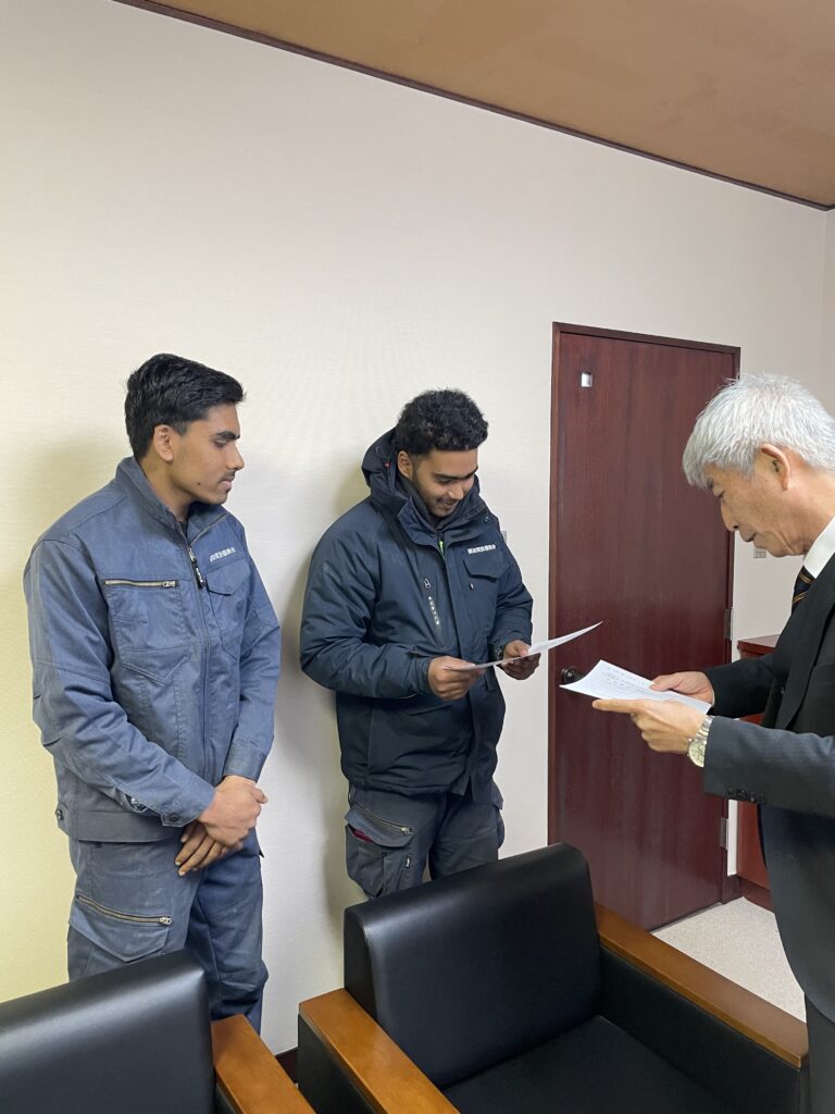 合格証書を社長から手渡され、二人共とっても嬉しそうでした☺️